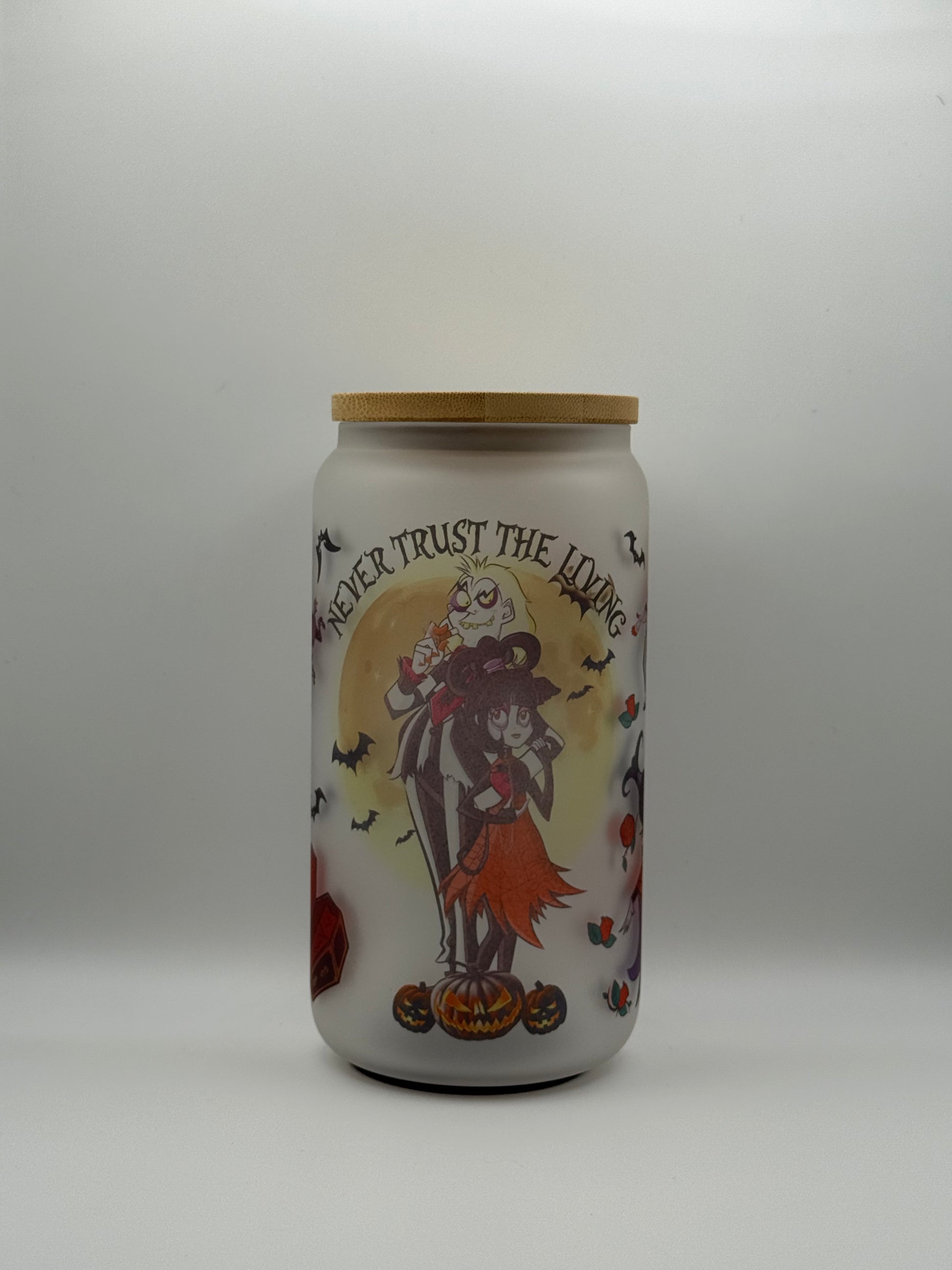 16oz Glass Libby Cup with Bamboo Lid, Rubber base and Straw