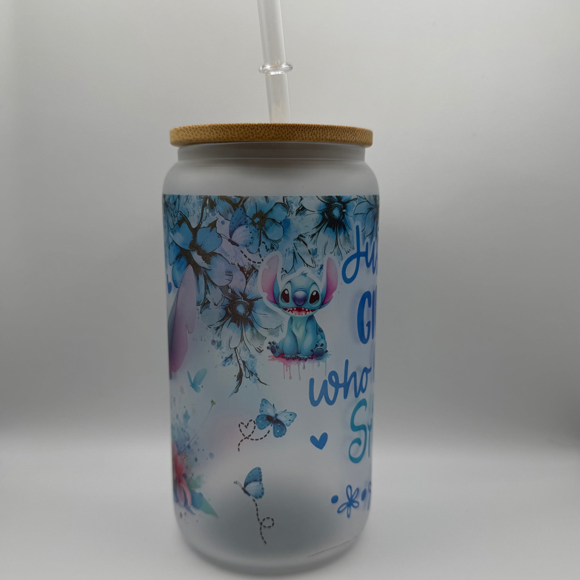 16oz Glass Libby Cup with Bamboo Lid, Rubber base and Straw